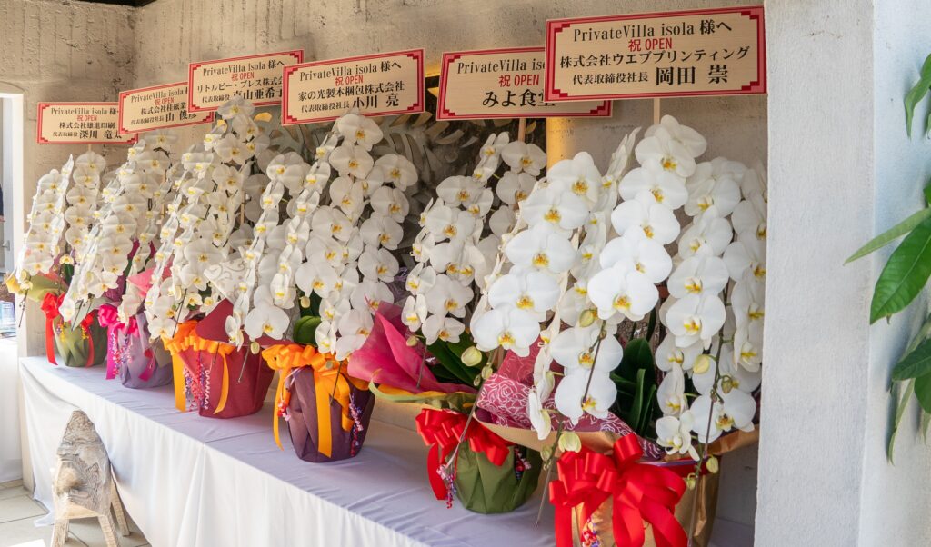 中には南国感溢れる祝花もありました。isolaの雰囲気にピッタリで素敵です✨